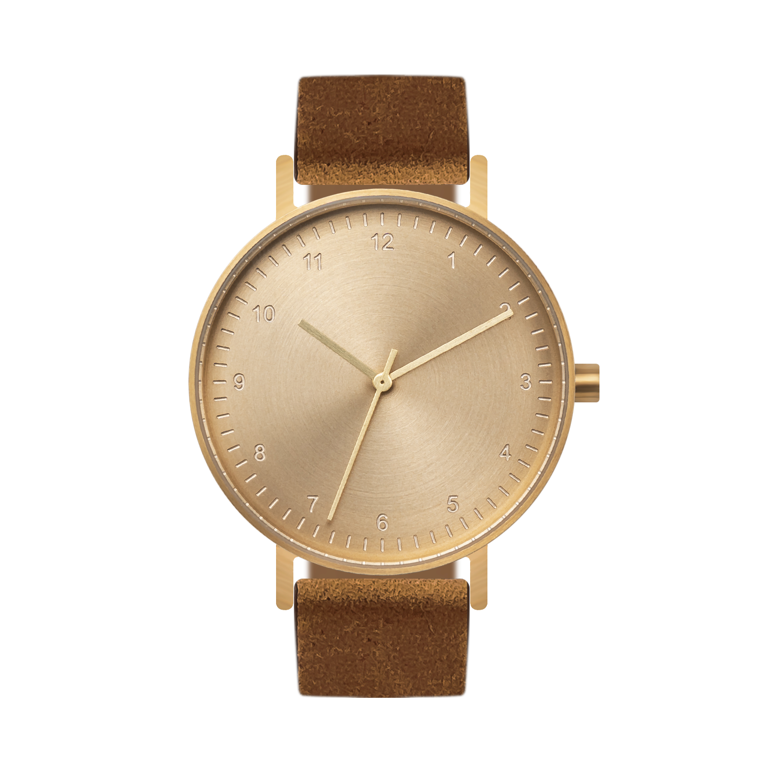 B60 Watch, Gold Case, Gold Dial, Leather Strap - Brown Suede