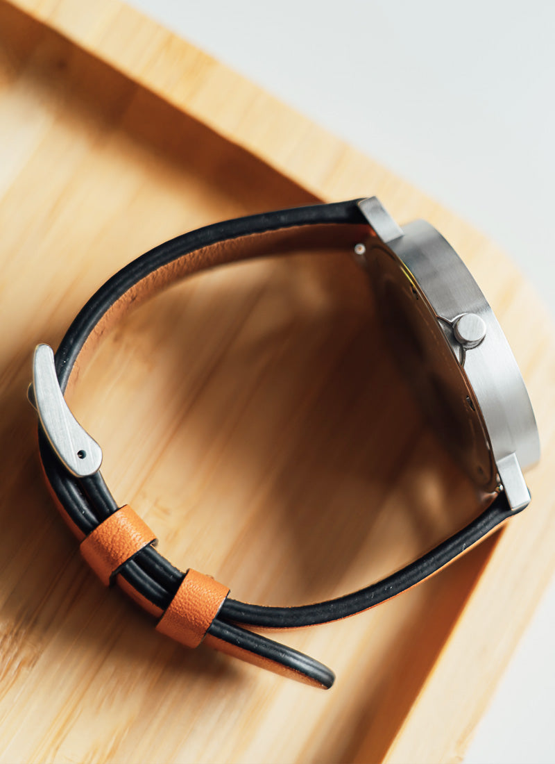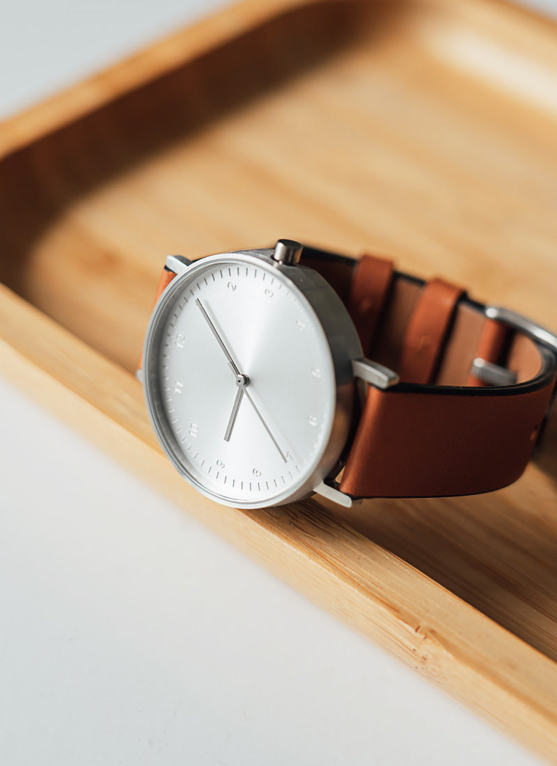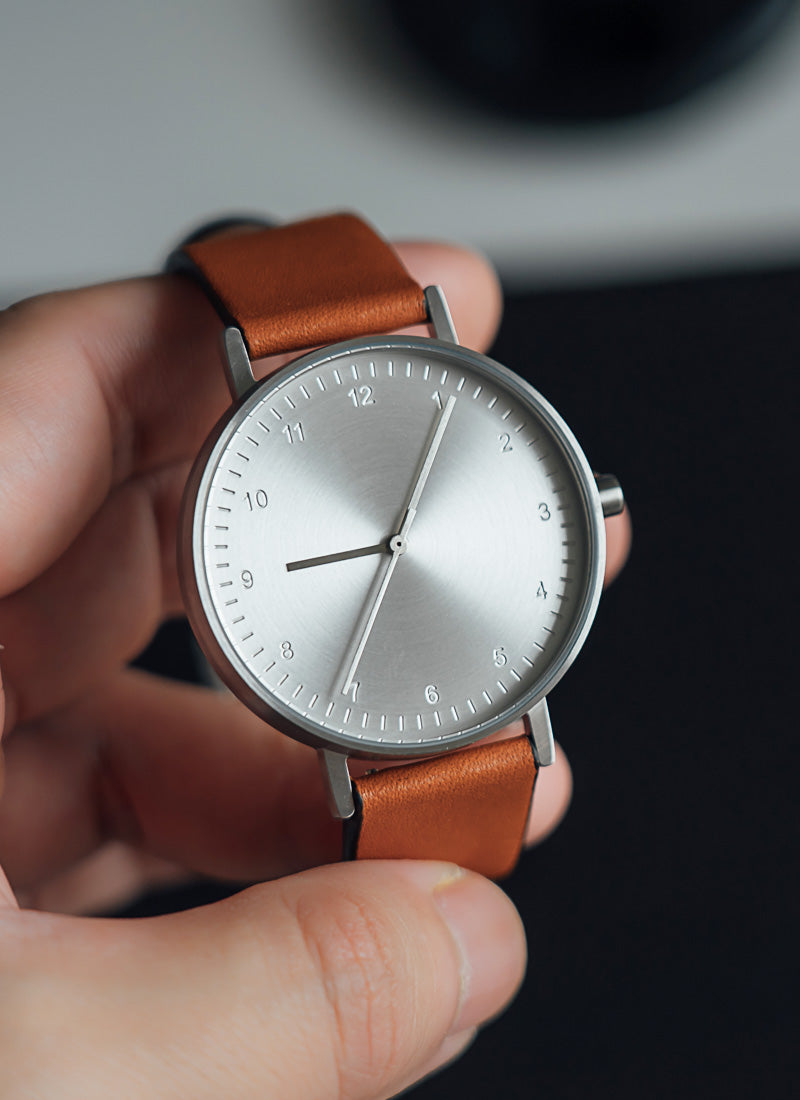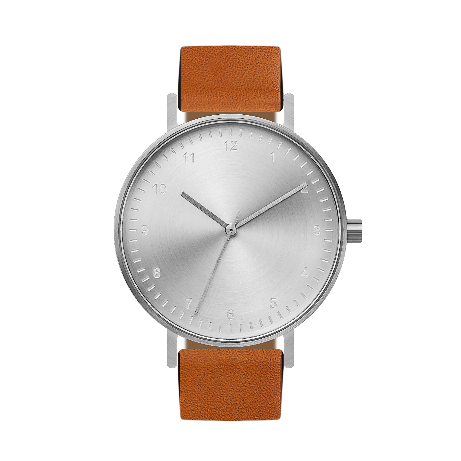 B60 Watch, Silver Case, silver Dial, Leather Strap - Tan