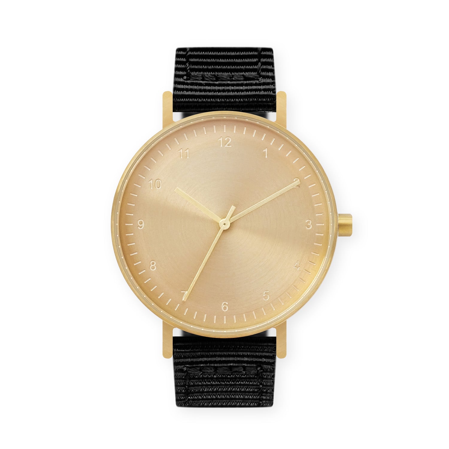 B60 Watch, Gold Case, Gold Dial, Nylon Strap - Black