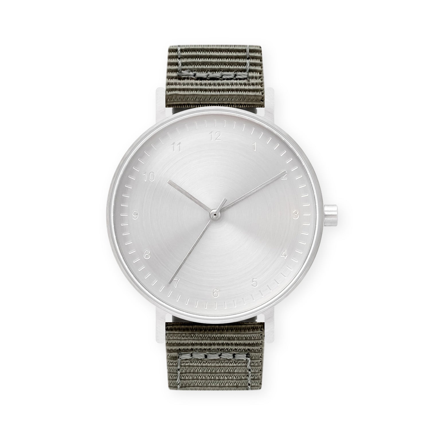 B60 Watch, Silver Case, Silver Dial, Nylon Strap - Gray