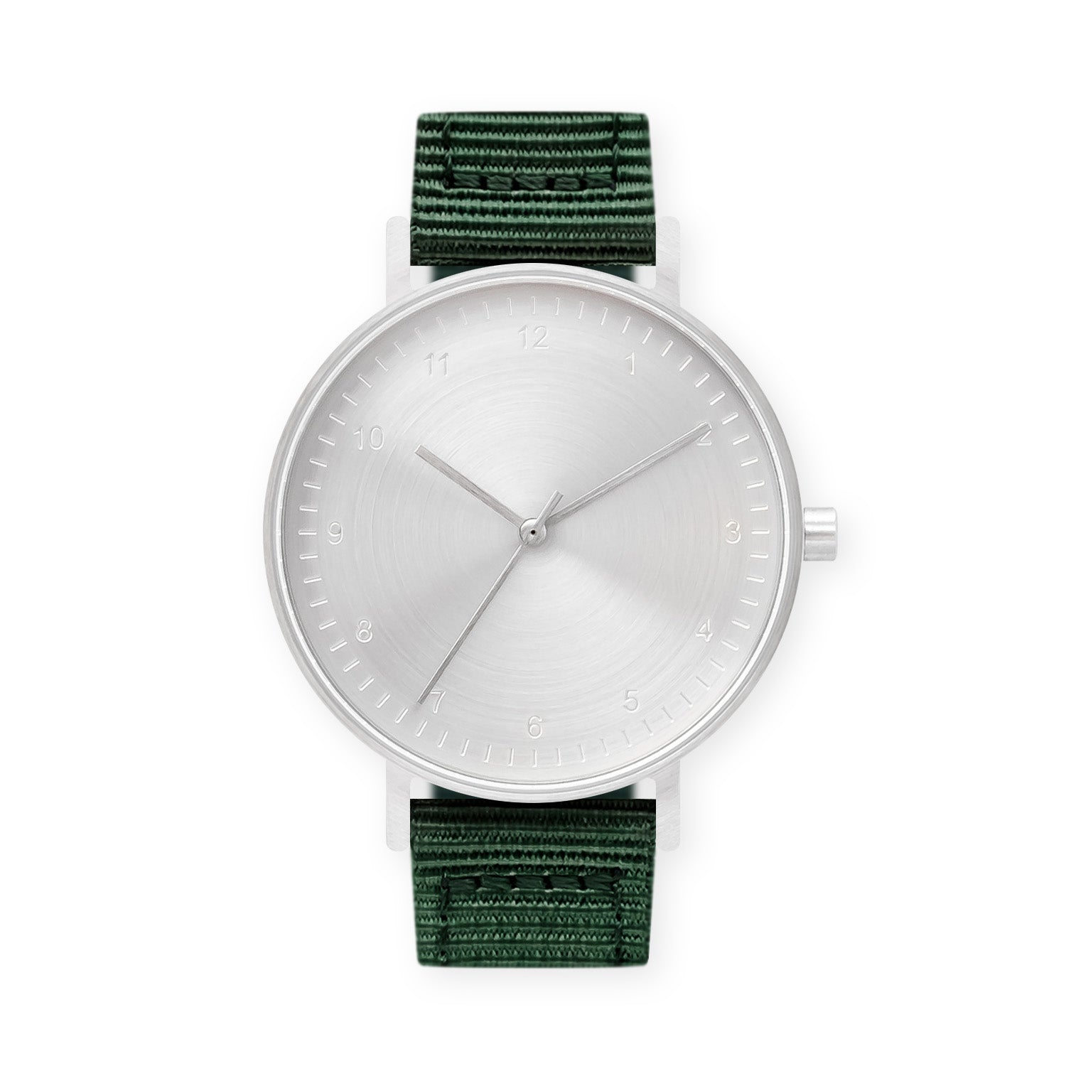B60 Watch, Silver Case, Silver Dial, Nylon Strap - Green