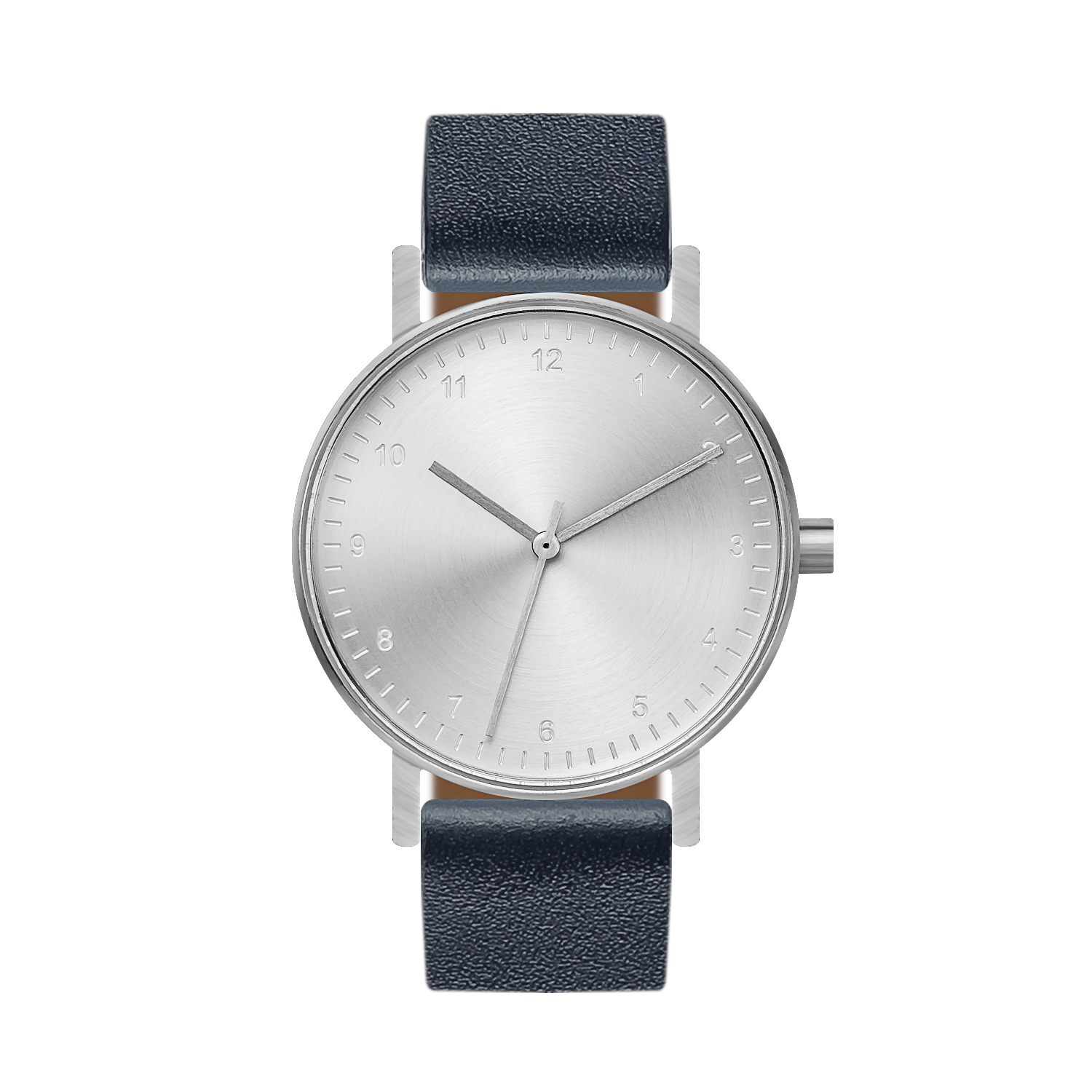B60 Watch, Silver Case, silver Dial, Leather Strap - Navy